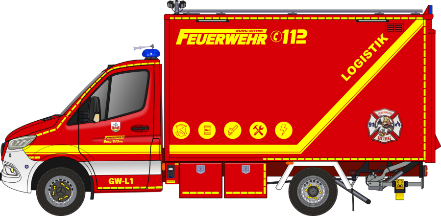 Fahrzeuge: ELW, HLF 20, DLK, GW-L, MZF